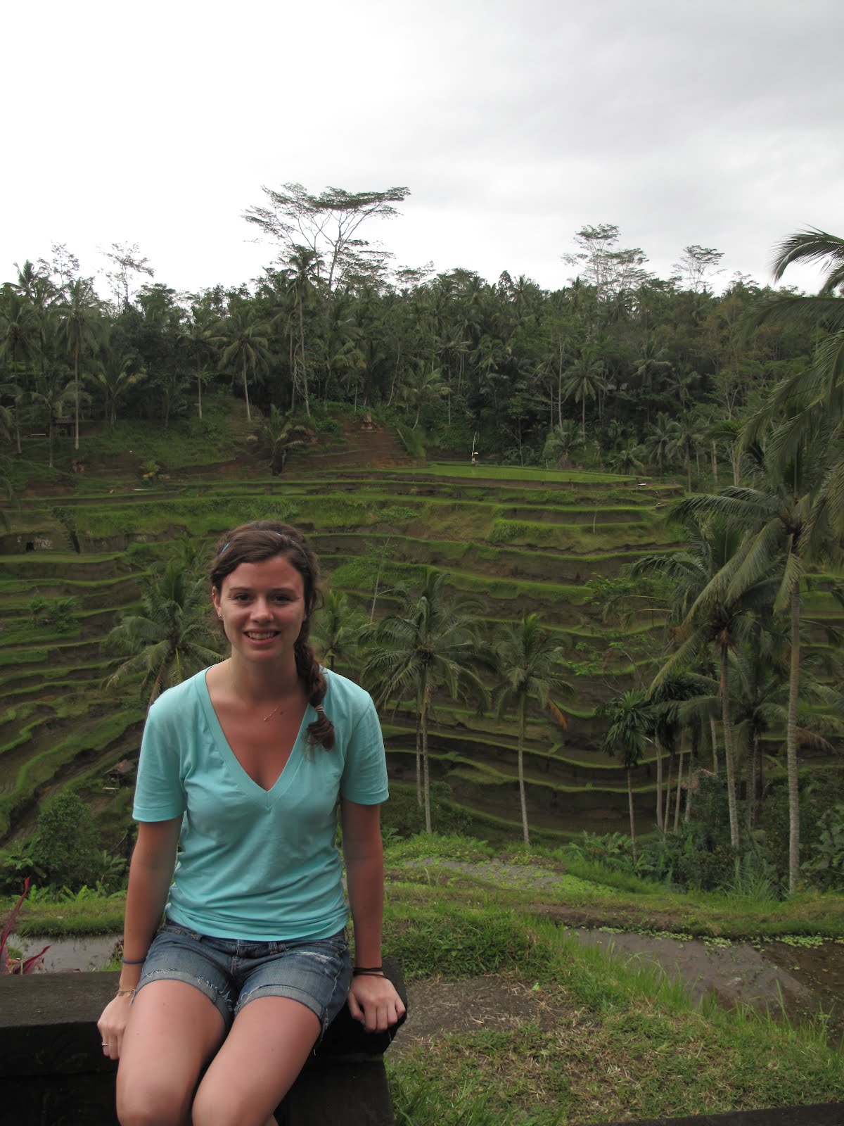 Something else they sold on the side of the street was petroleum, which they kept in used Absolute bottles in these stands on the side of the street. I couldn’t stop taking pictures of them! Ok, so now let’s talk about the tour we took. Gutti was our tour guide and he met us at the hotel then took us around the island to places that he thought we would like (places he got compensation from if we bought things) such as a place where we watched people make silver jewelry, a wood shop, a weaving shop, a traditional Indonesian dance, a water temple and a place where they make the world’s most expensive coffee (Luwak Coffee). We also saw the layered rice paddy and an active volcano!